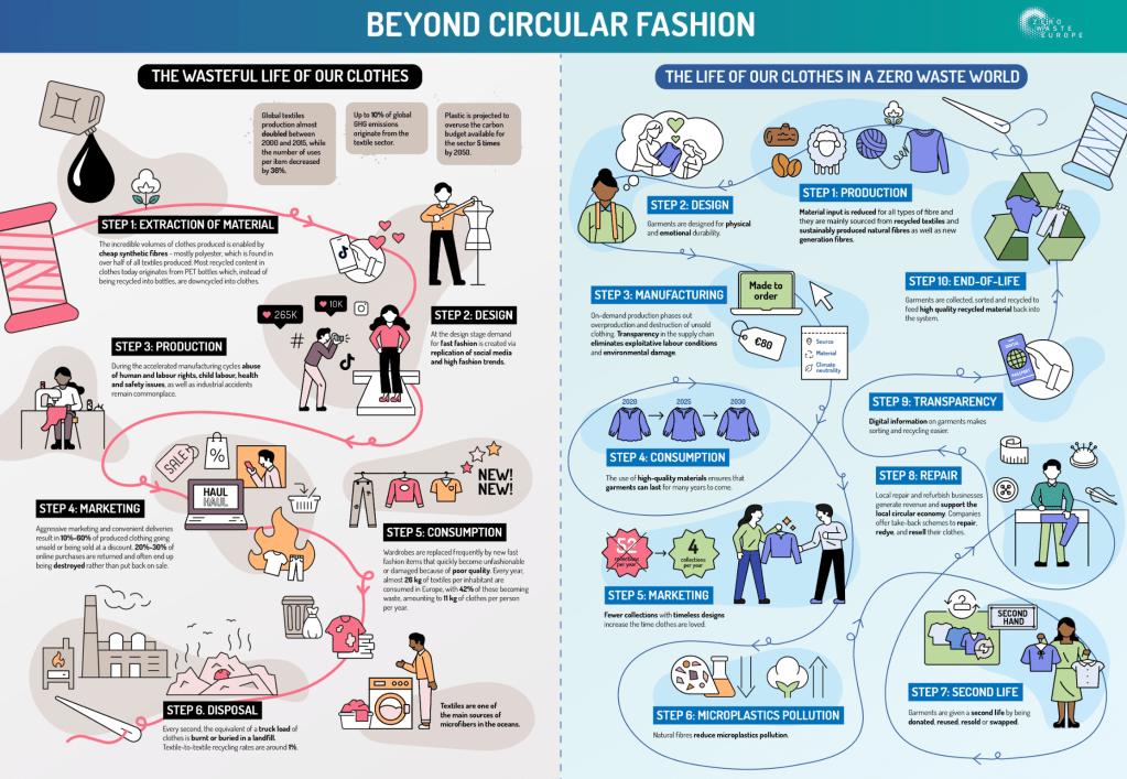 One effective and engaging way to educate people about current issues is through the use of Infographics. As humans, we are incredibly visual learners. That’s why infographics are so popular. By combining visual media with relevant data points the message becomes more effective. Below I analyze some of my favorite infographics about the fast fashion industry and its impact on the environment.
